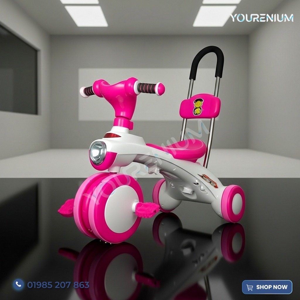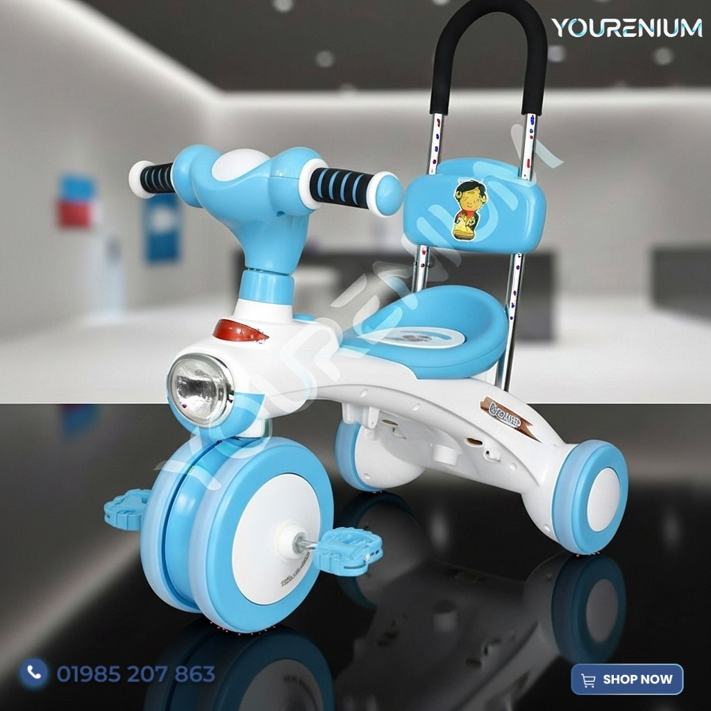 Yourenium Baby Tricycle শিশুদের জন্য একটি আধুনিক, নিরাপদ ও স্টাইলিশ ট্রাইসাইকেল, যা খেলার পাশাপাশি শিশুর চলাফেরার দক্ষতা উন্নত করতে সাহায্য করে।