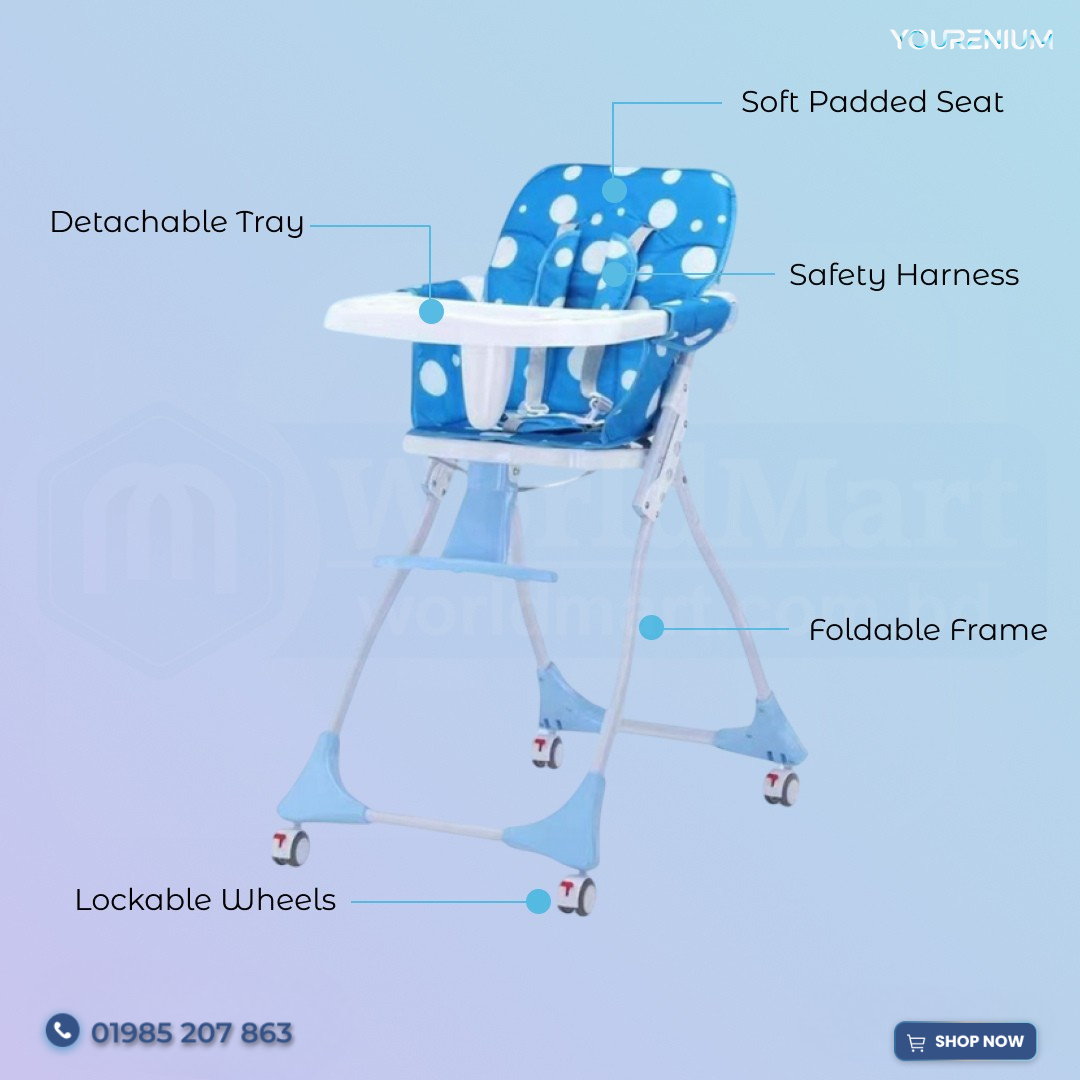 ৬ মাস থেকে ৩ বছর বয়সী বেবির জন্য সেফ ও আরামদায়ক Baby High Feeding Chair। ফোল্ডেবল, হুইলসহ এবং সহজে পরিষ্কারযোগ্য ট্রে। নরম কুশন, সাপোর্টেড বসার ব্যবস্থা আর ট্রে থাকায় বেবি থাকে নিরাপদে, আর খাওয়ানো যায় সহজে।