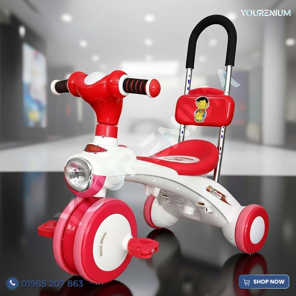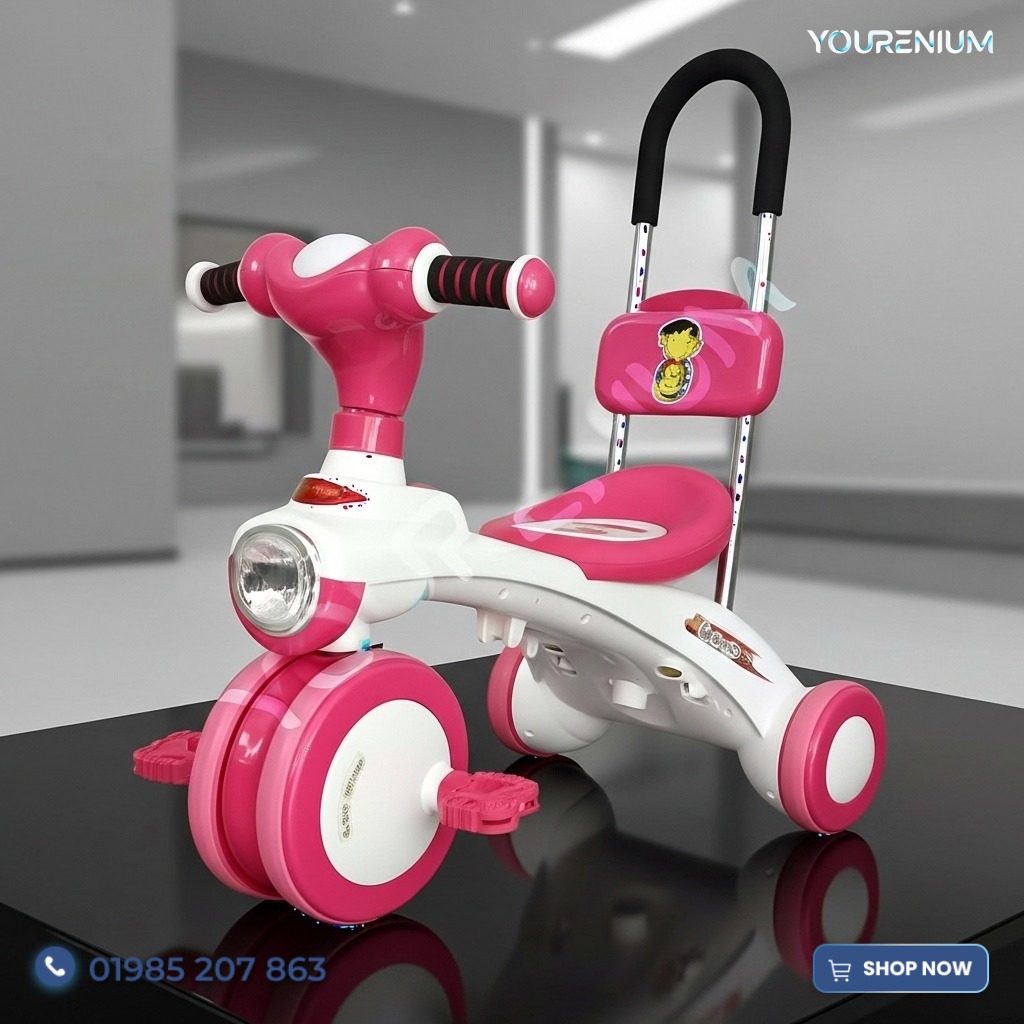 Yourenium Baby Tricycle শিশুদের জন্য একটি আধুনিক, নিরাপদ ও স্টাইলিশ ট্রাইসাইকেল, যা খেলার পাশাপাশি শিশুর চলাফেরার দক্ষতা উন্নত করতে সাহায্য করে।